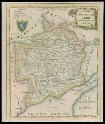 c1750 Original Antique Map WALES County Map of MONMOUTHSHIRE KITCHIN (W/DW104)
