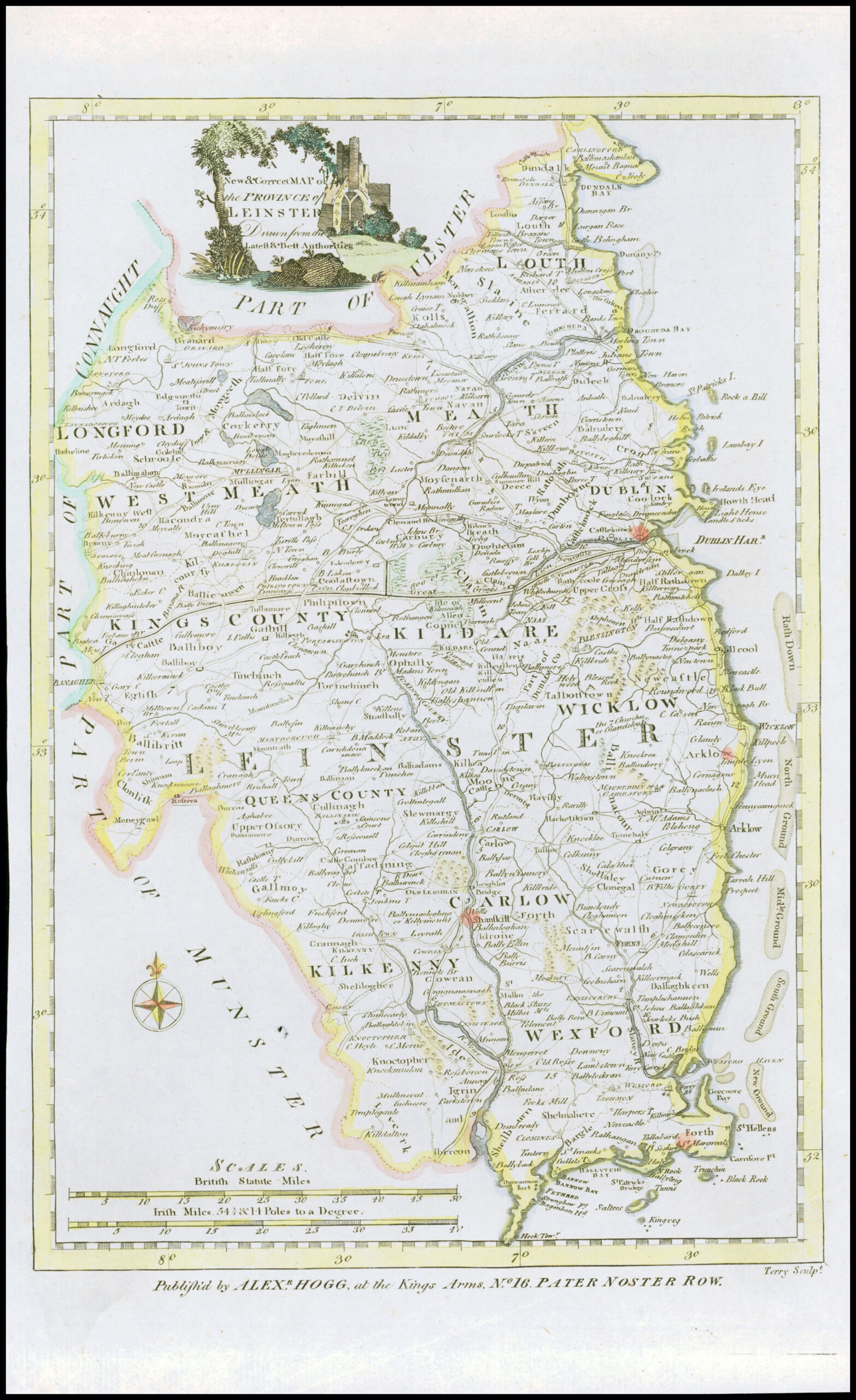 c1786 "A New & Correct Map of the PROVINCE of LEINSTER Drawn from the Latest & Best Authorities".