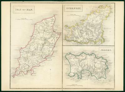 c1820 - An original engraved antique map titled: "ISLE OF MAN - GUERNSEY - JERSEY"