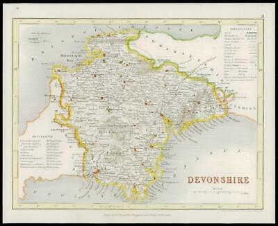 c1845 - A fine original antique map titled:" DEVONSHIRE "