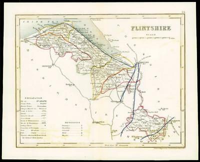 c1860 Antique colour map of "FLINTSHIRE" Wales by Joshua ARCHER (W/DW43)