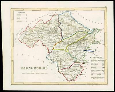 c1860 - An original antique colour map by Joshua Archer titled: "RADNORSHIRE".