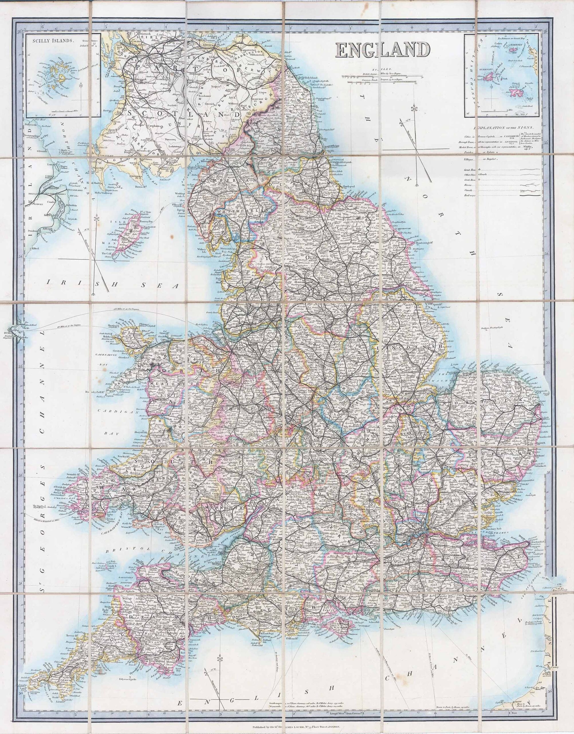 c1870 "ENGLAND". A fine large folding map dissected into 30 sections and laid to linen, folding into original book covers. Published Richd Holmes Laurie, No 53 Fleet Street, London.