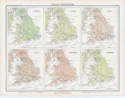 c1885 Large Map ENGLAND WALES AVERAGE TEMPERATURE May July Bartholomew (RA14)