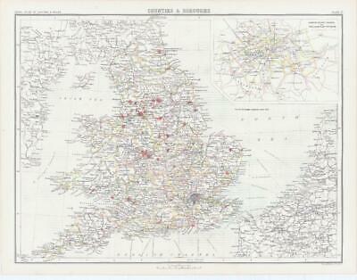 c1885 - An original colour antique map titled: " COUNTIES & BOROUGHS - London County Council and Parliamentary Divisions "