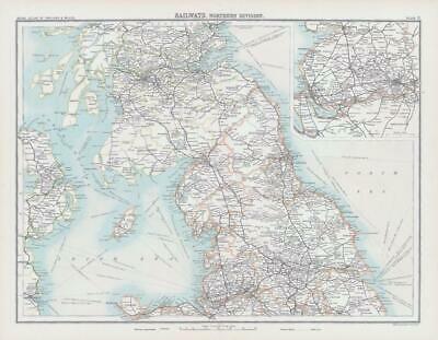 c1885 - An original colour antique map titled: " RAILWAYS, NORTHERN DIVISION "